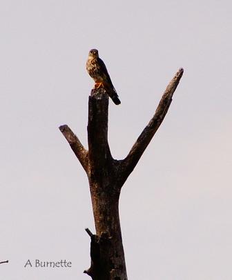 Spent the weekend with friends at a cabin near Boundary Waters Canoe Area, and found a merlin happily noshing on something feathered.