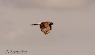 Look at this fantastic male harrier, molting from juvenile/first year plumage to his second year. The brown-to-grey is pretty clear as it is coming in, with tail, flight feathers, etc.